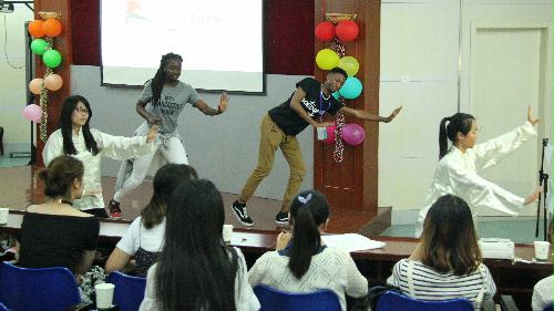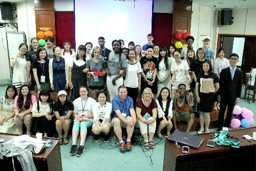 On June 4th, College for Overseas Education (COE) and College for International Studies (CIS) held an opening for the camp. They and their buddies, students from the CIS had a happy get-together. The project leaders from both sides made speeches, hoping for a smoothly success for this summer camp. After then, Chinese students introduced the city of Yangzhou to their friends and played Chinese traditional performances, such as playing the Guzheng. American students also showed their talents by dancing and singing.
