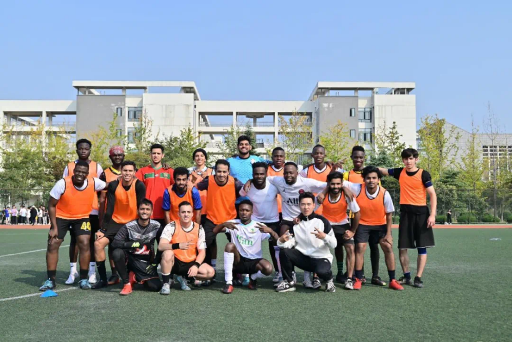 On the afternoon of October 14, the international student soccer teams from Yangzhou university and Jiangsu University held a match at the East Sports Field on Yangzijin campus.