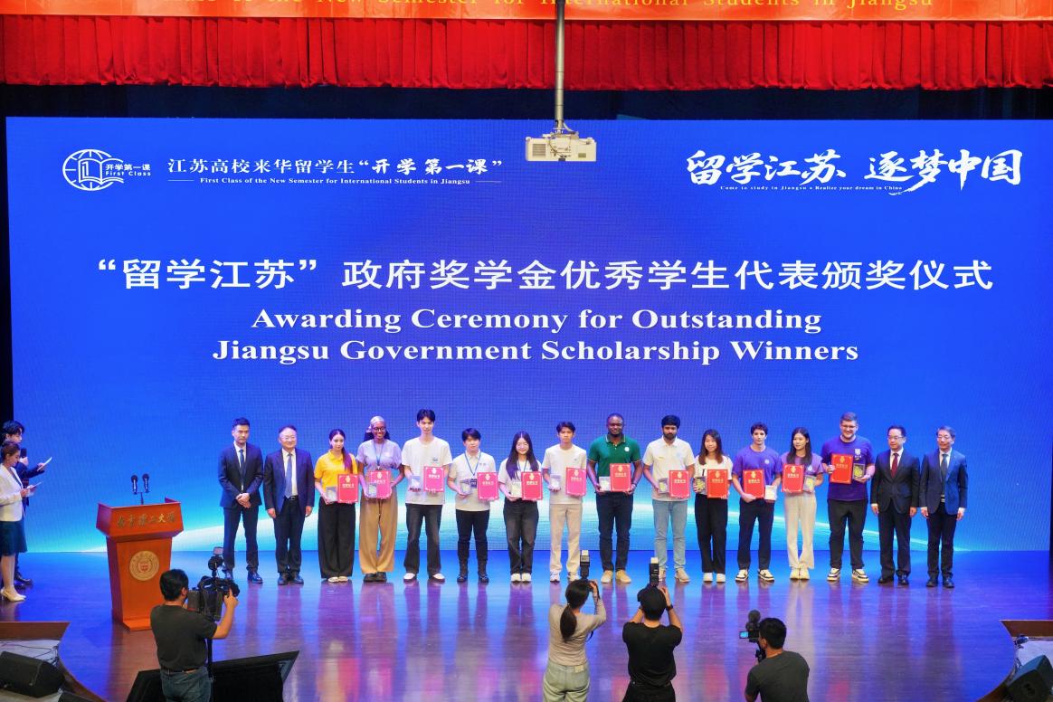 During the ceremony, our Moroccan student, Ge Zilan, was honored with the "Study in Jiangsu Government Scholarship" and received the award from Deputy Director Yang Shubing