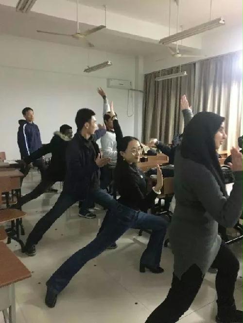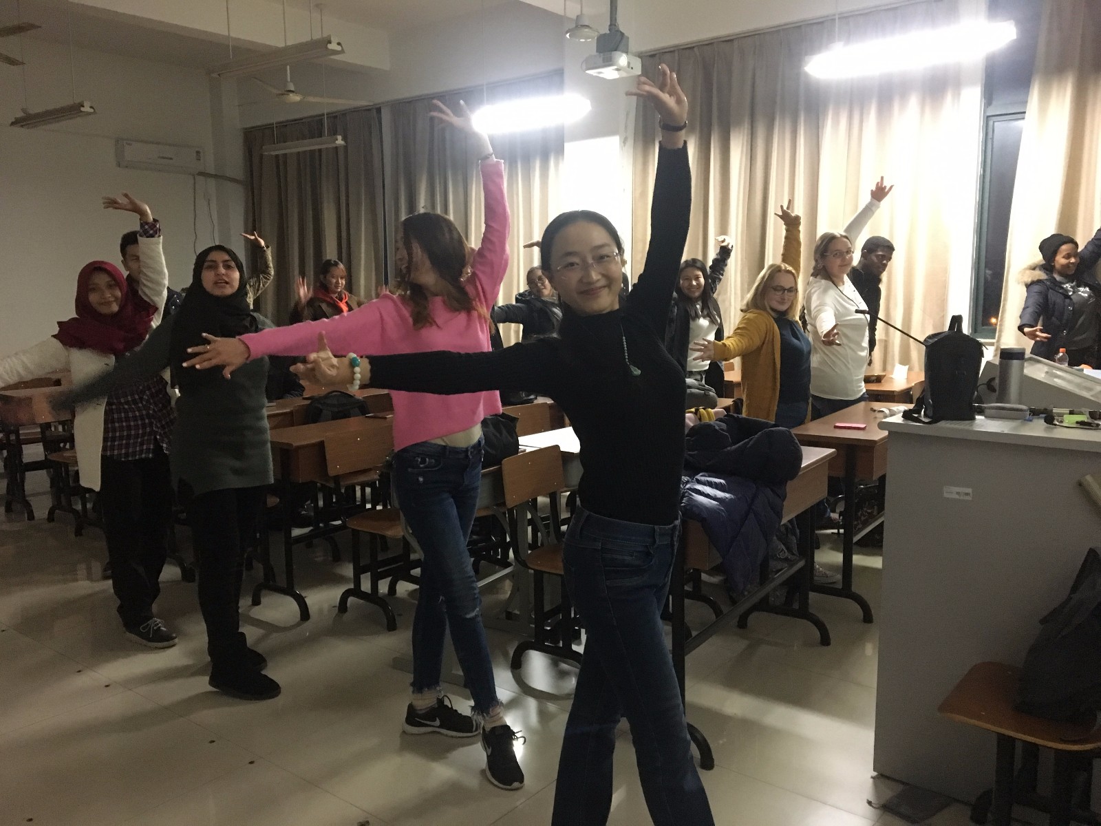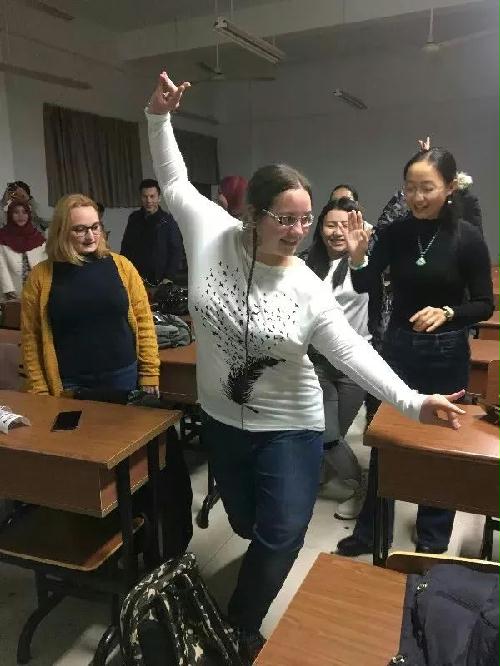 Chinese teacher Lu Di introduced the concept of Chinese folk music, classification, the ancient Chinese music view and the basic gestures of Chinese classical dancing.