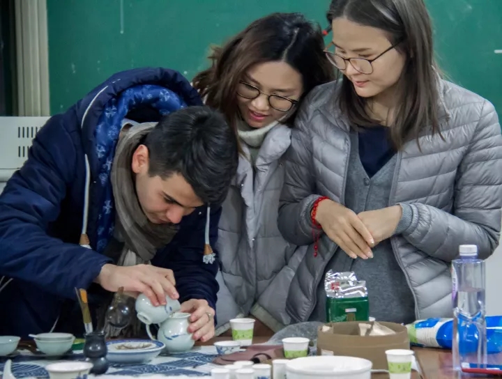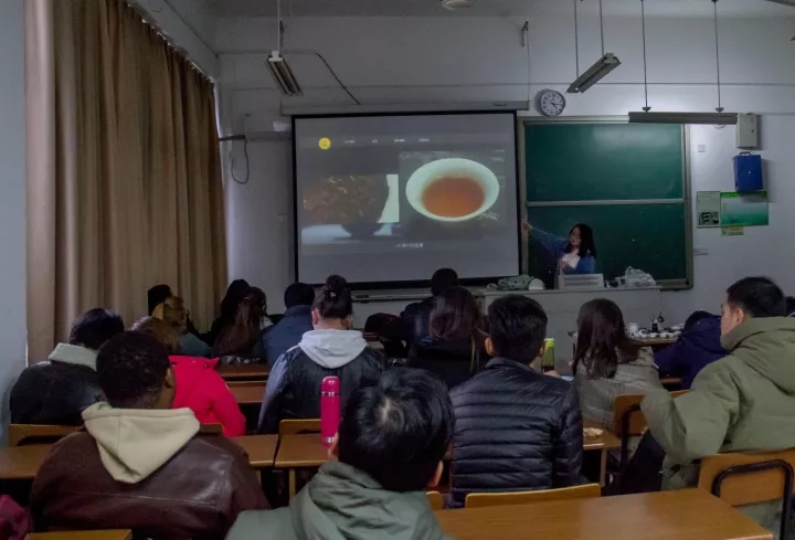 The teacher first introduced the origin, the development and the international status of Chinese tea culture. Besides, she introduced tea sets, the steps to drink tea and tea ceremony spirit to students. In order to make the students have a better understanding of Chinese tea culture, she showed them the basic steps to make tea, and guided them to taste six kinds of the most representative of Chinese tea.