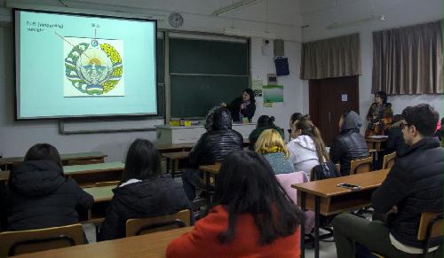 In the first part, An Bing, from Uzbekistan,showed the history, religious culture,delicious food and clothes of Uzbekistan with pictures, songs and videos.All the students were attracted by the customs of Uzbekistan.Then she introduced ceramics, the unique style,chic colors and patterns of which, made everyone felt amazing.